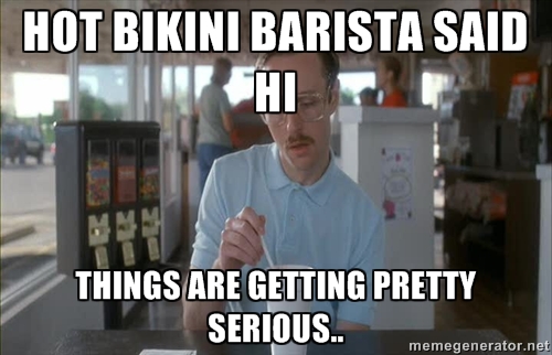 Last week Jello and I were out looking at new apartments to move into. We scoured all of the surrounding Seattle areas and ended up a little out of the way at a gas station. The gas station had one of those “Bikini Barista” spots in the parking lot that our area is “famous” for.