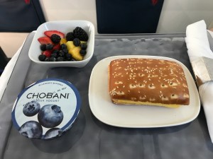 We were amazed at the difference of treatment between First class and coach. I am not used to an attendant focused on us. She talked with us regularly (enough so I was uncomfortable), and kept asking if she could get us stuff (also enough to make me uncomfortable). She did seems slightly annoyed we didn’t have our food trays out, until she realized we had never sat in first class before and then she was happy to tell us how to do it.